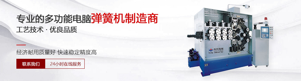 東莞市西田彈簧機械有限公司,位于美麗的珠江畔,中國最具魅力城市——東莞市,地理位置優(yōu)越,交通方便。 東莞市西田彈簧機械有限公司是集彈簧設備研發(fā)、測試、制造、銷售于一體的民營科技企業(yè),生產的電腦彈簧機型號有:TCK-208N/Y壓簧機、TCK-208B壓簧機、TCK-220A/226A壓簧機、TCK-235A/335A壓簧機、TCK-350A/550A壓簧機、TCK-580A壓簧機、TFK-320TQ/620TQ數控彈簧機、TFK-330/335TQ數控彈簧機、TFK-340/350TQ數控彈簧機等系列,彈簧機繞制的鋼線直徑為0.15-8.0毫米,可繞制拉簧、扭簧、壓簧、異形簧等各式彈簧......